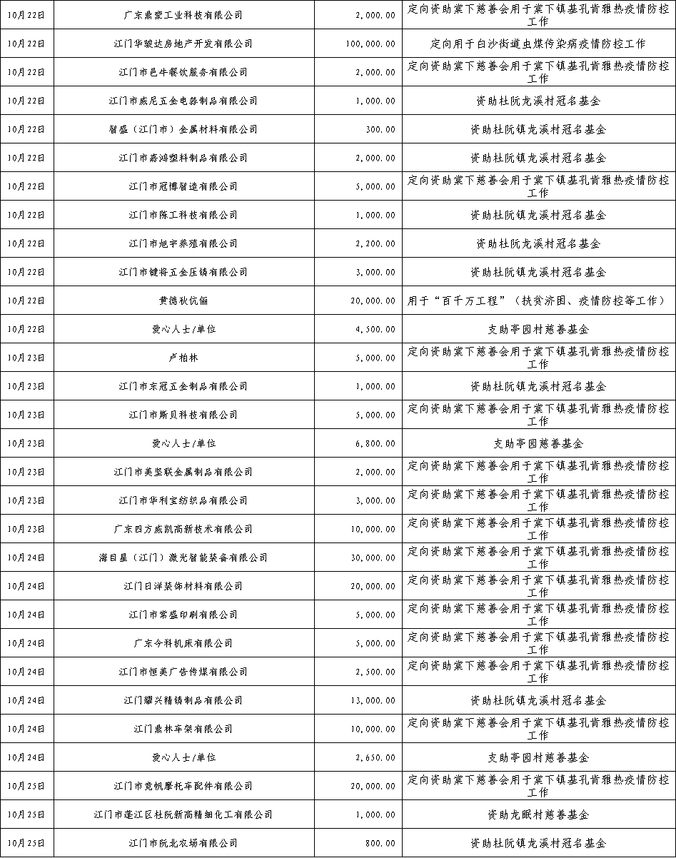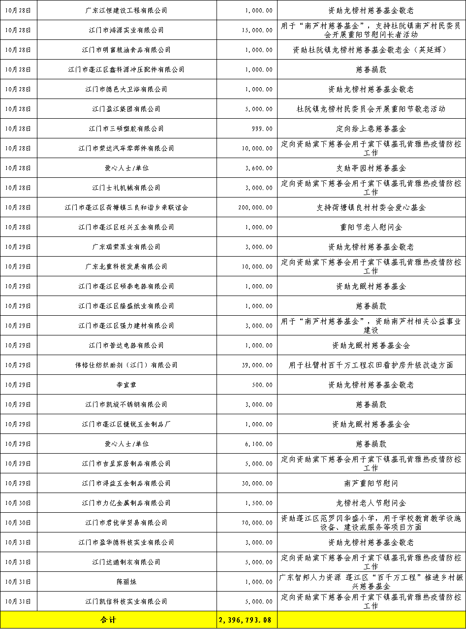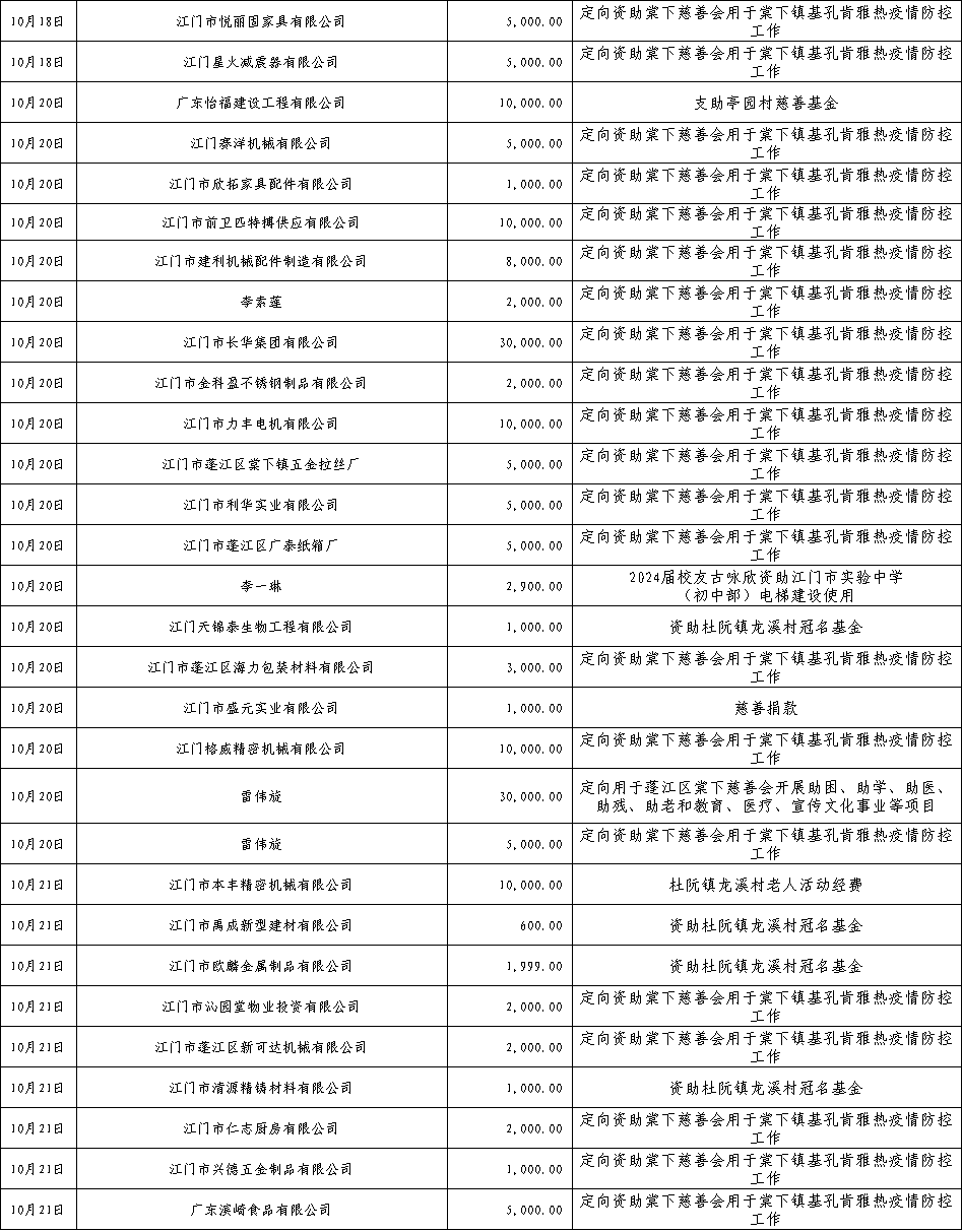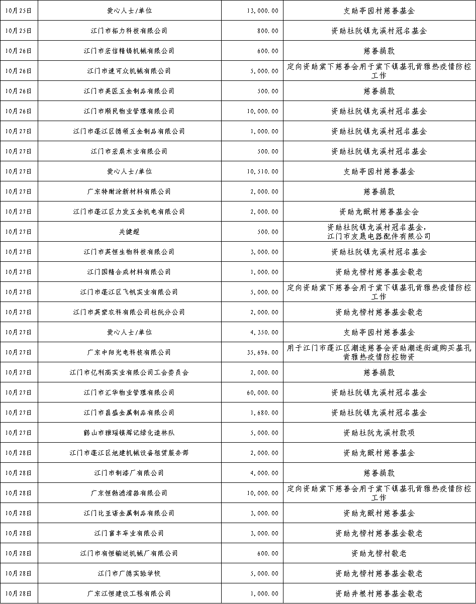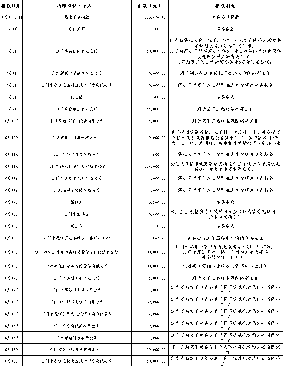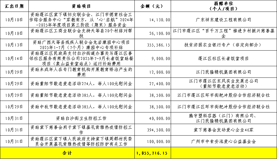 【信息公开】蓬江区慈善会2025年10月善款收支明细
