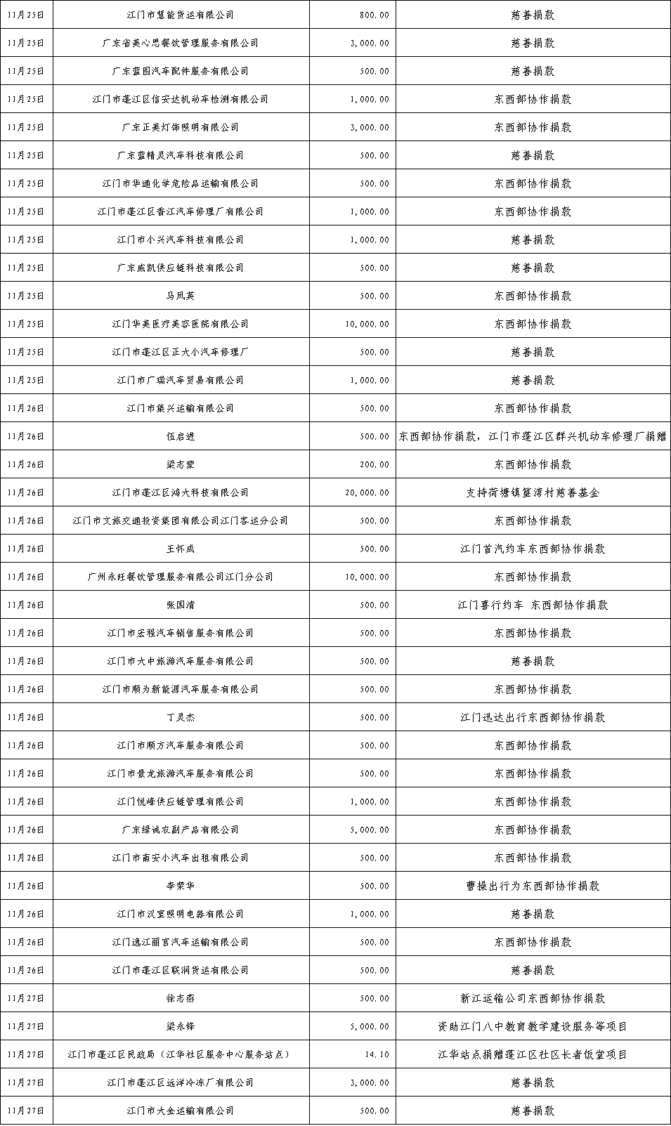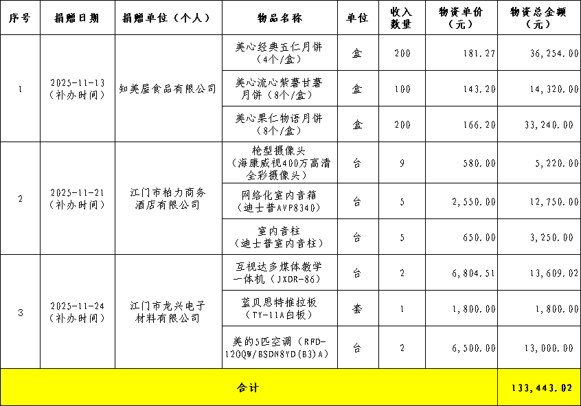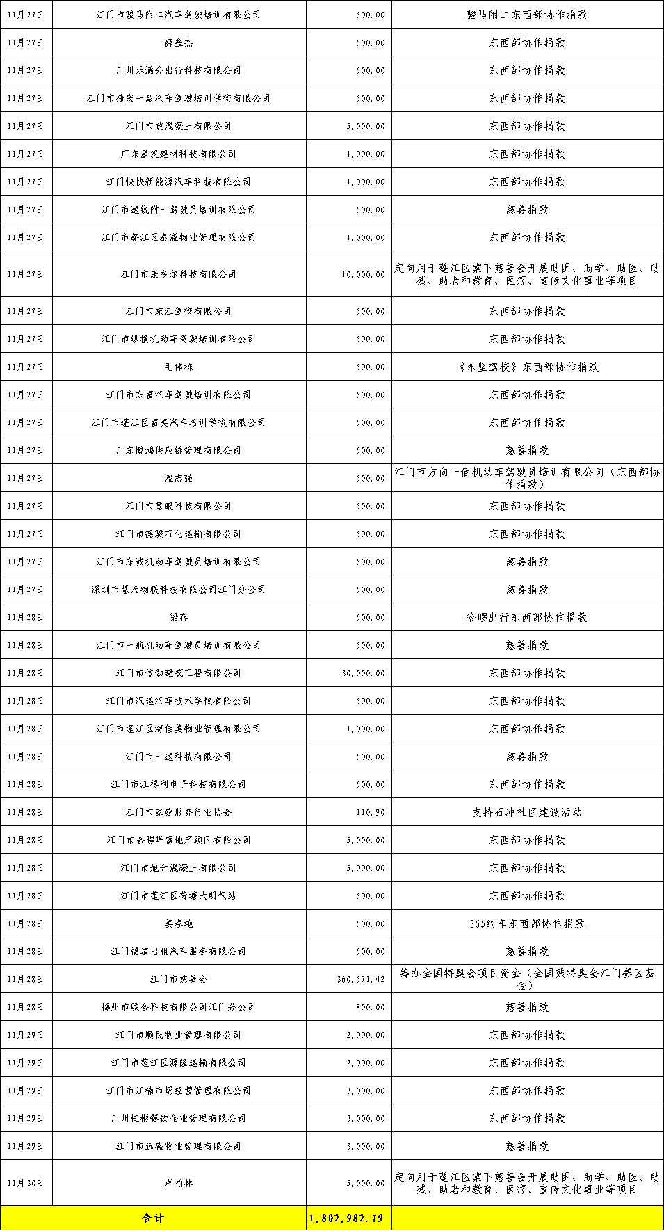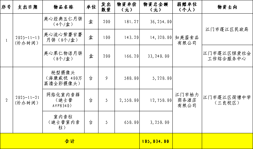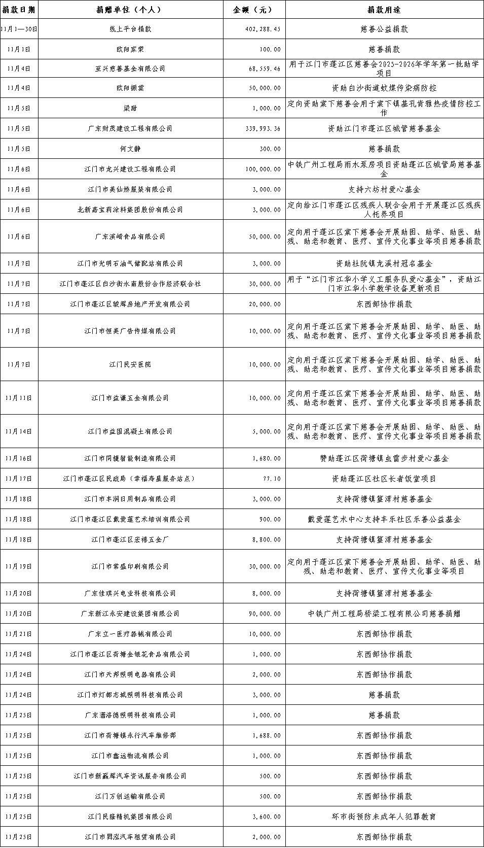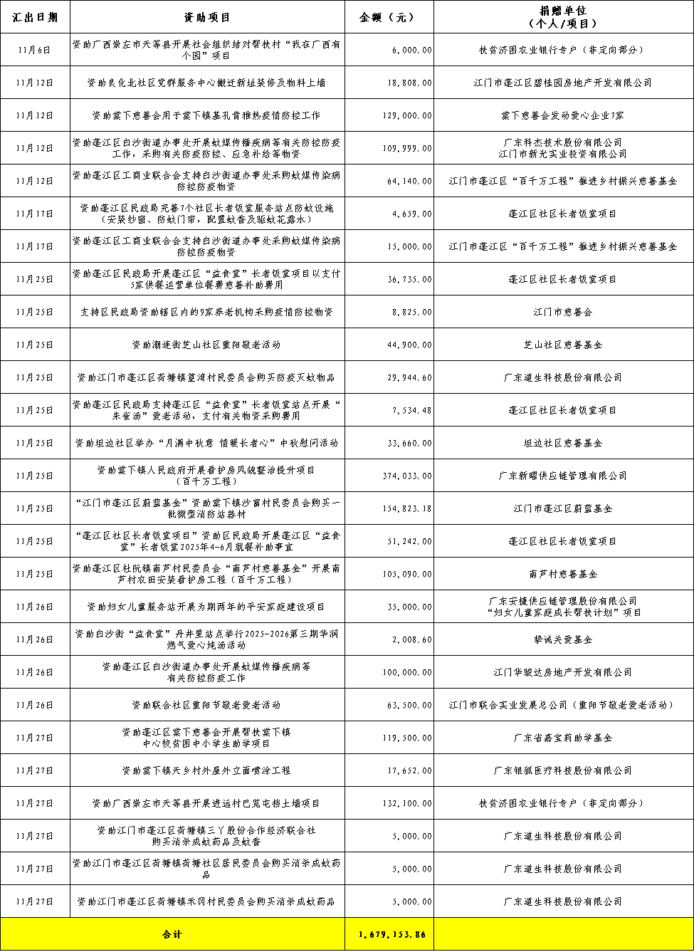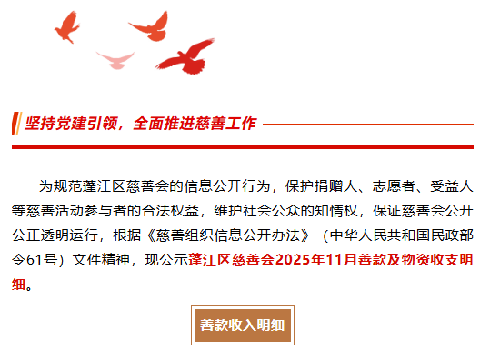 【信息公开】蓬江区慈善会2025年11月善款及物资收支明细