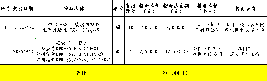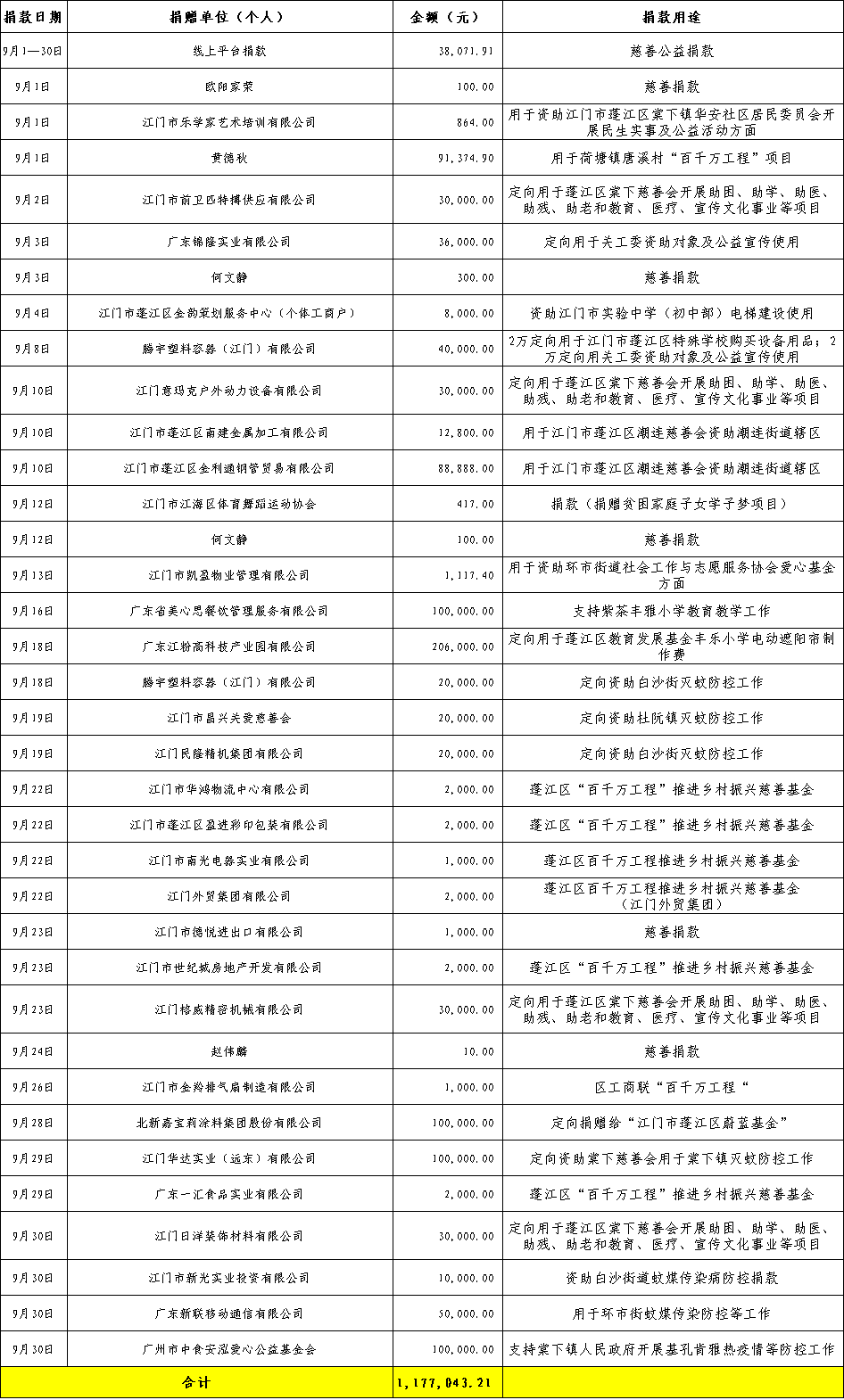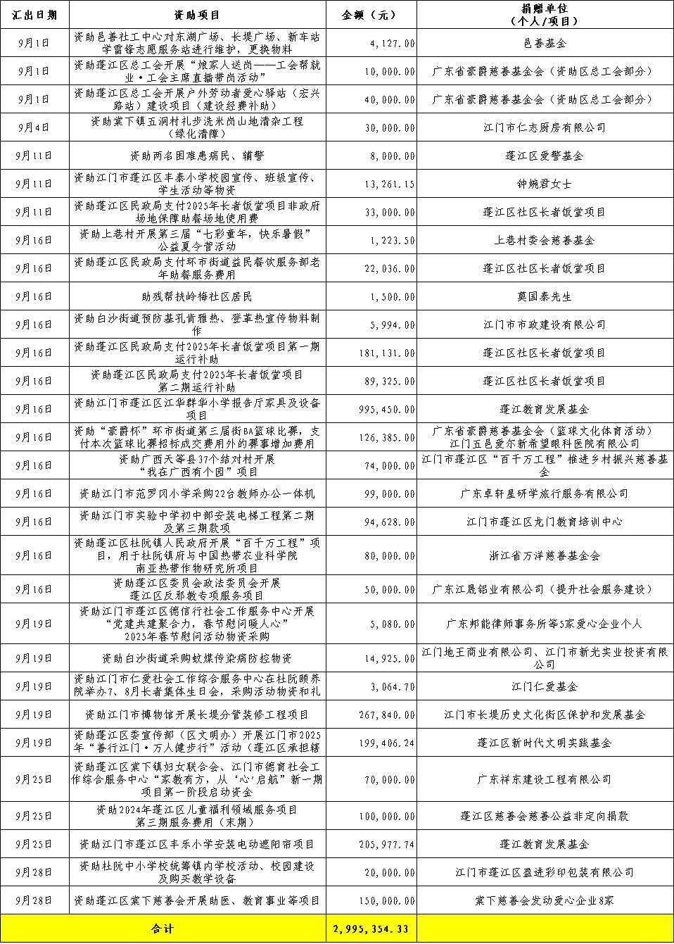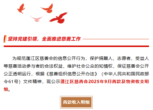 【信息公开】蓬江区慈善会2025年9月善款及物资收支明细